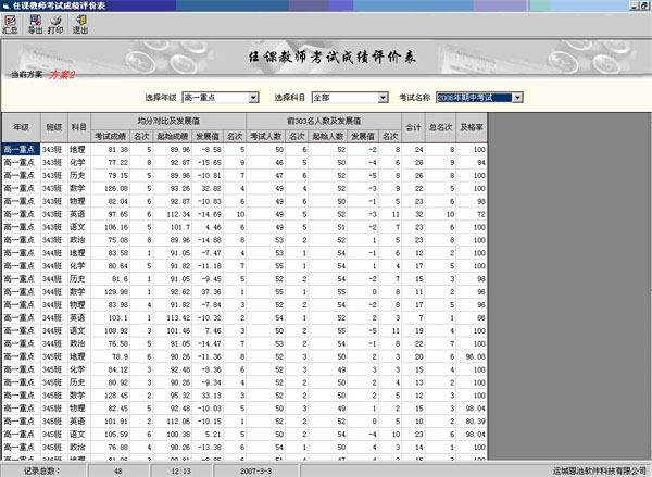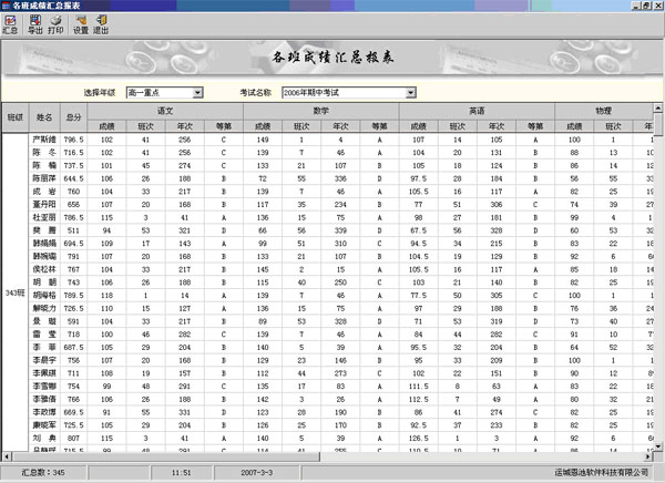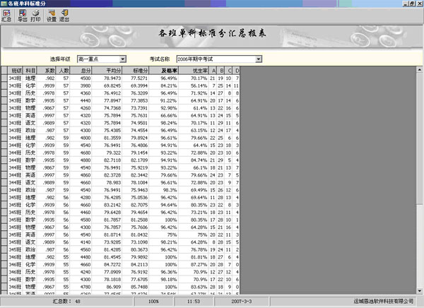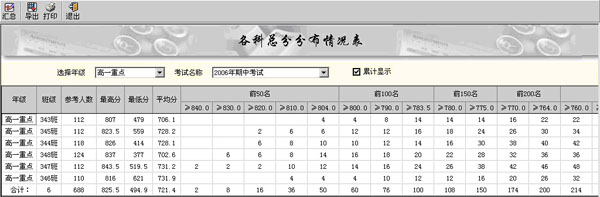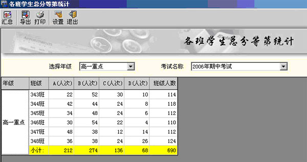 (總分等第統(tǒng)計(jì)界面)